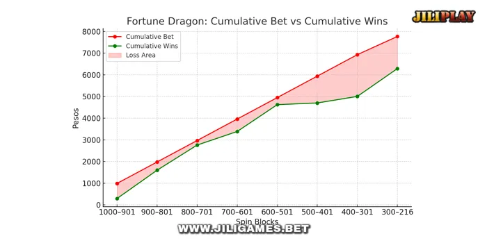 From the start, Fortune Dragon kept us chasing. The green line never quite caught up to the red one — a visual confirmation of the dragon’s stingy side.